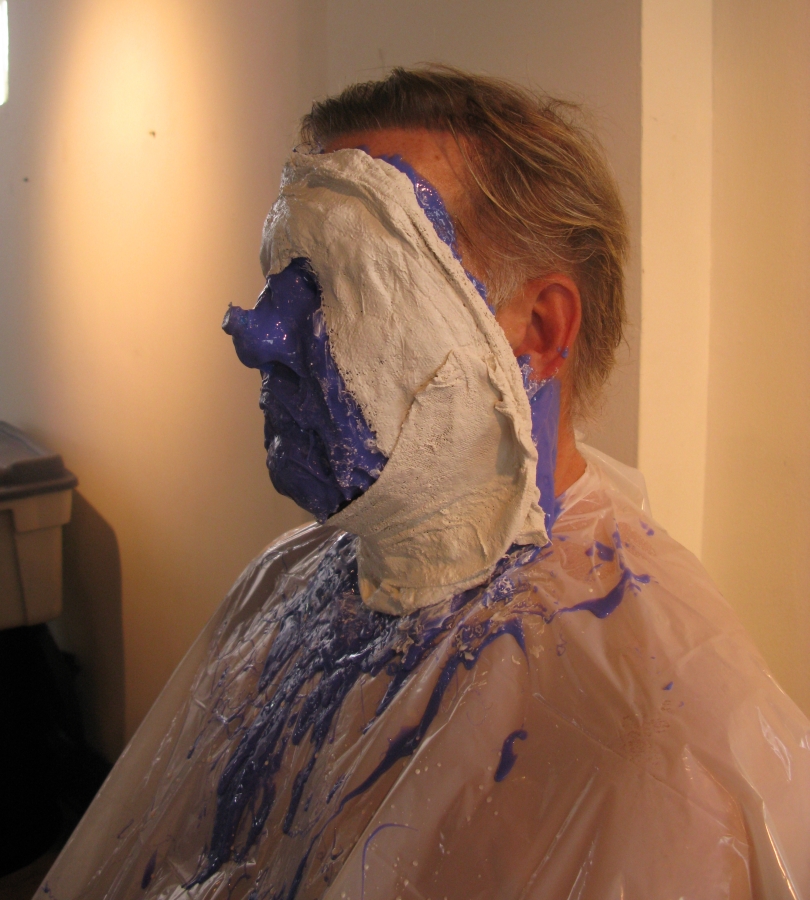 Alex Lifeson having a plaster cast of his face created for the prosthetic CHIN used in the Time Machine Tour Videos